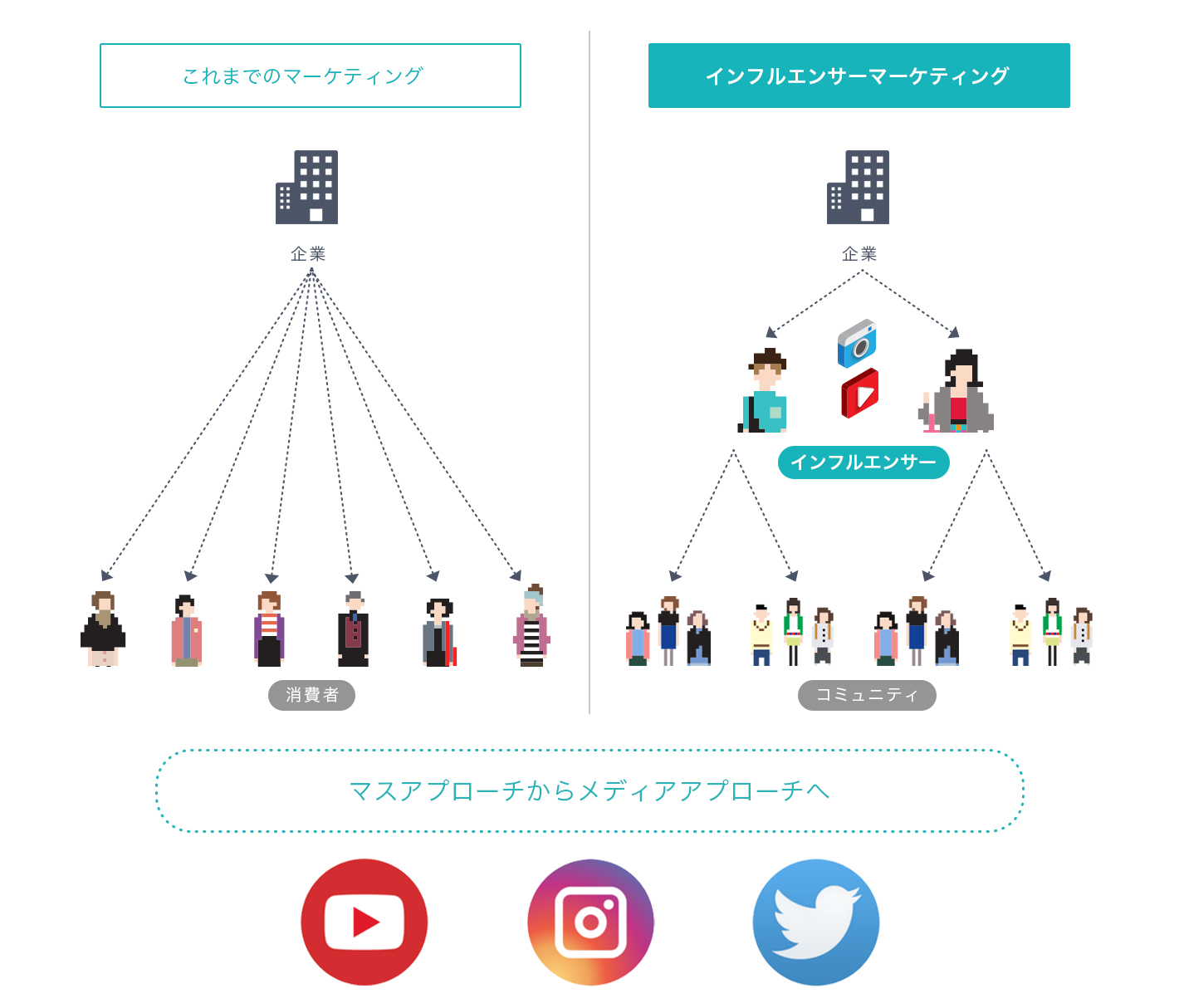 インフルエンサーマーケティングは、従来のマスメディアマーケティングのターゲティングに比べて、